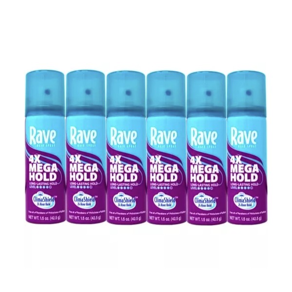 6 Pack Rave 4X Mega Hairspray 1.5 Ounce