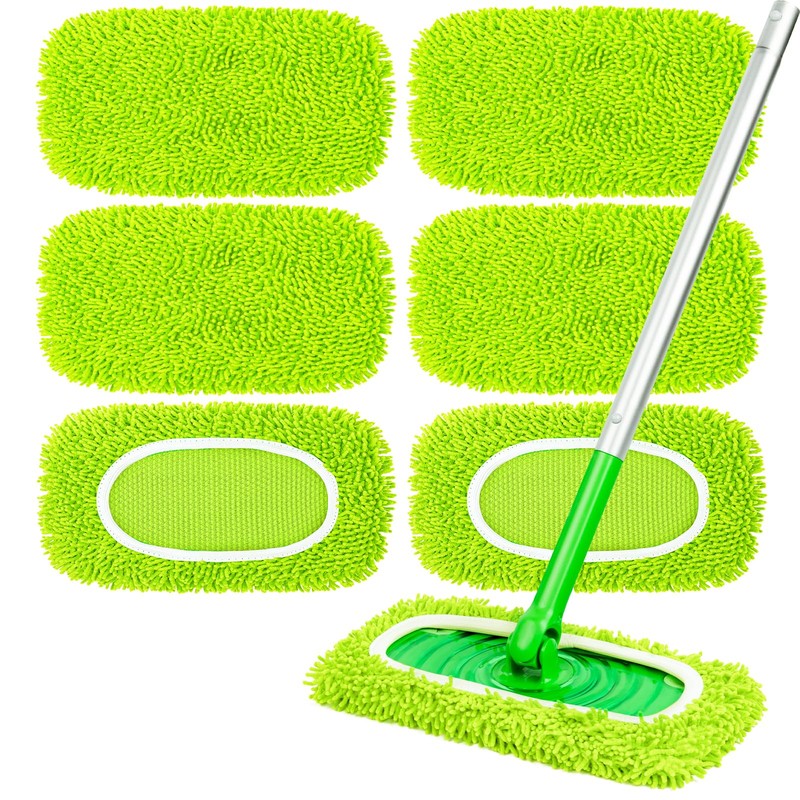 • 🔹【Exceptional Value Pack】This set includes 6 reusable mop pads, each capable of being used 200+ times—totaling over 1200 uses! A cost-effective and eco-conscious alternative to disposable Swiffer pads. (Note: Mop handle not included.)