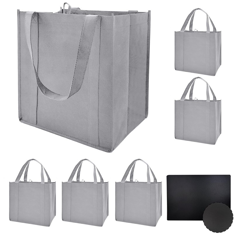6 Pack Reusable Reinforced Handle Grocery Bags - Heavy Duty Large Shopping Totes with Thick Plastic Bottom can hold 45+ lbs (6, gray)