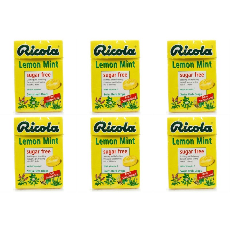 (6 PACK) - Ricola - Lemon Mint SF Lozenges Box | 45g | 6 PACK BUNDLE