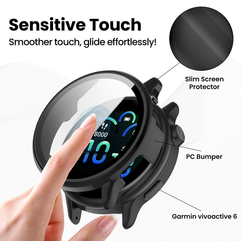 6-Pack Screen Protector Case Compatible with Garmin Vivoactive 6 with Tempered Glass, Ultra-Thin Hard PC Full Protective Face Cover Bumper Shell