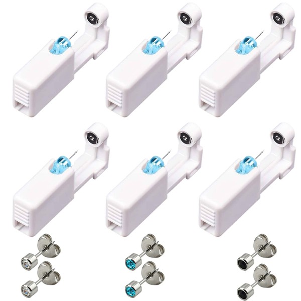 - [Great Value Package]: You will get 6 pack self ear piercing guns and 6 built-in ear studs in 3 colours(blue, black, clear), the quantity is enough to meet your daily needs.