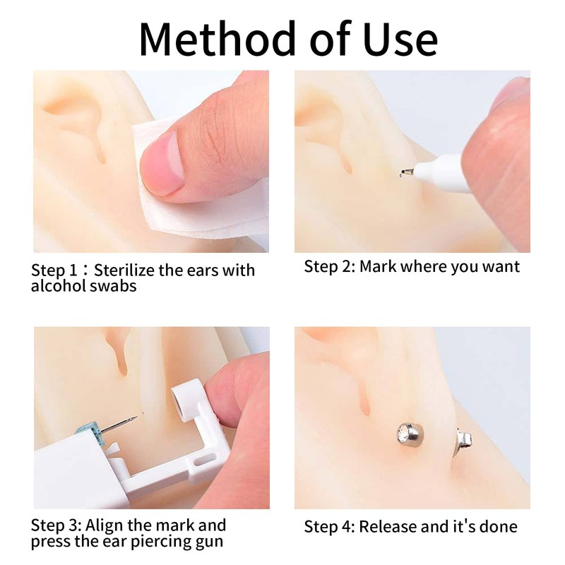 - [Convenient to Use]: Self ear piercing gun kit, suitable for hand-holding. It is convenient for you to use, allowing you to have pierced ears in a few seconds.