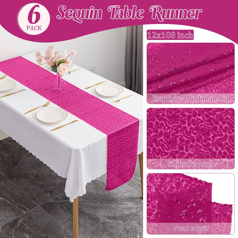- 【Package Include】 You will receive 6 pieces sequin table runners. When you receive the bling table runners, maybe you will see some sequins fall off, it is normal, not a matter of quality. Just shake off these sequins before you use it. Sparkle table runners make your dining tables more dazzling and outstanding. Perfect to decorate your tables.