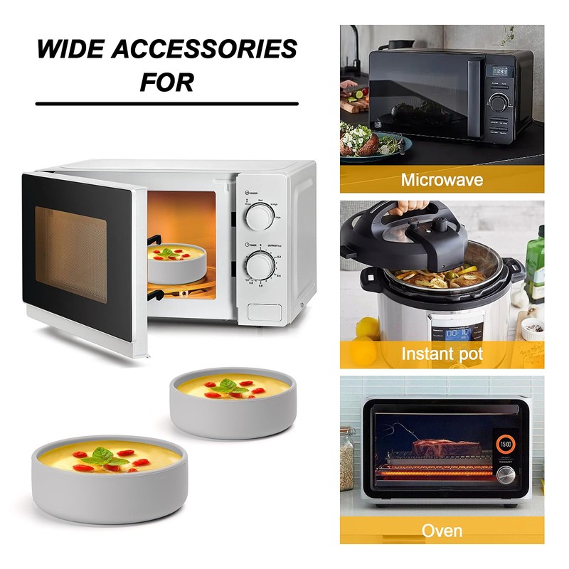 - VALUE ACCESSORY FOR AIR FRYER MICROWAVE COMBO – The egg molds are stackable, and they are induvial egg pans, which is compatible with all kinds air fryer, from 3Qt air fryer to 8Qt, from dual basket air fryer to one basket air fryer; and all pressure cooker, instan pot models, even small counter top toaster oven. Recommend to use a little cooking SPRAY to keep the egg from sticking and for easy clean up.