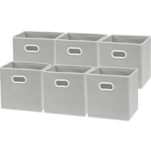Simple Houseware Foldable Cube Storage Bins with Handles, 11-Inch, Gray, 6-Pack, Fabric Cubes Organizer for Closet or Shelves