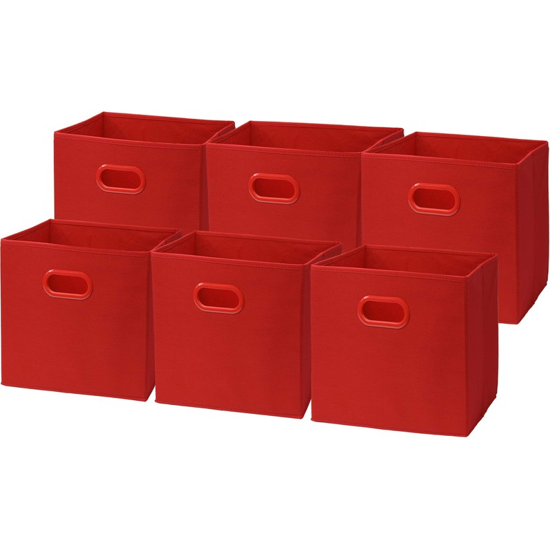 6 Pack - SimpleHouseware Foldable Cube Storage Bin with Handle, Red