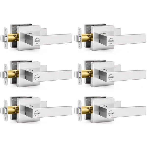 Hasmikit 6 Pack Square Door Lever Privacy Door Lock Handleset, Keyless Lockset Door Knobs Interior Door Knobs Storage Room Bathroom Set Reversible Keyless Flat Levers in Satin Nickel