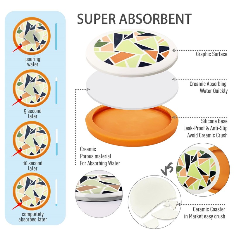 - High quality: Our silicone coaster is made of high-quality silicone, with excellent ceramic insert on the other side to ensure the durability and comprehensive protection of the furniture.
