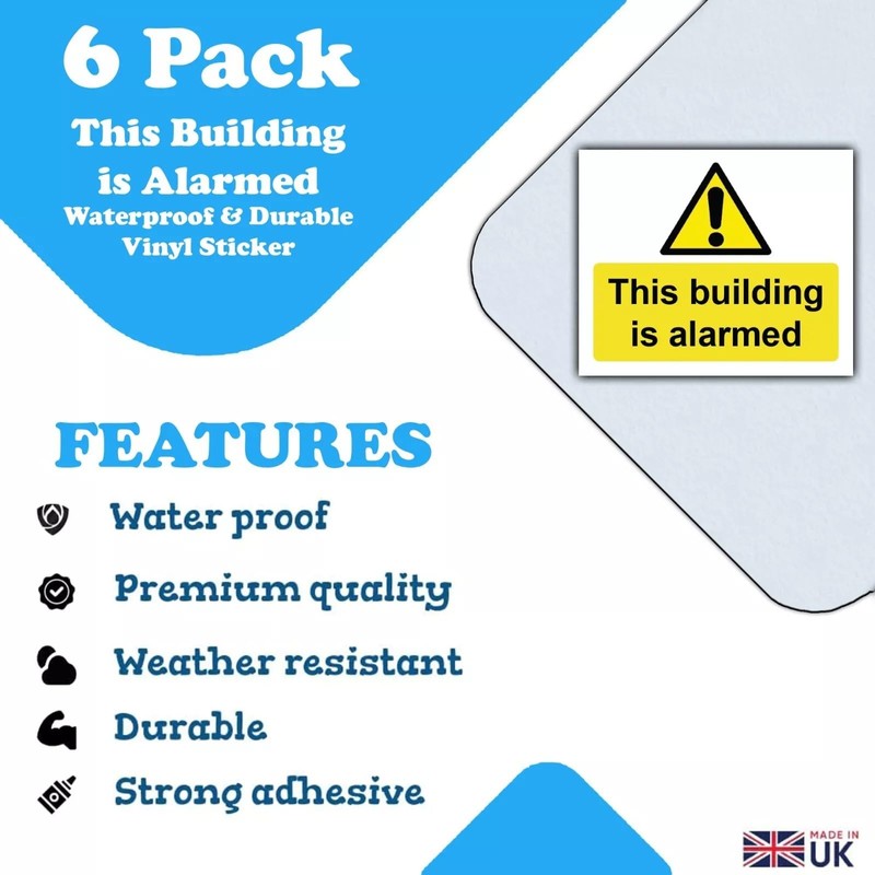 6-Pack - This Building is Alarmed Vinyl Sticker Signs - building Alarmed Notice 110mm x 90mm