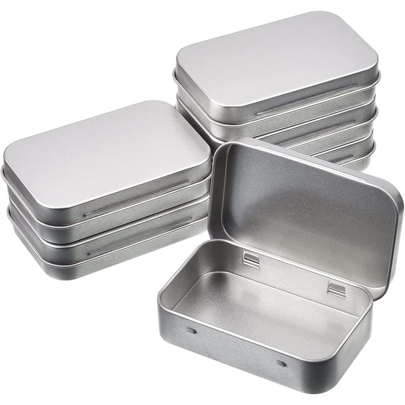 - Metal Rectangular Empty Hinged Tins Boxes are applied to store various tiny things, such as lip balms, mints, mini candles, keys, cosmetics, USB cables, sample pots, teas, herbs, fishing lures or hooks, nail art, holiday gift cards, cash, or small gifts