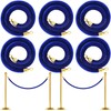 6 Pack Velvet Stanchion Rope, 5 Feet Crowd Control Stanchion Ropes Safety Barrier with Gold Plated Hook for Carpet Events Movie Theaters Grand Openings Hotels Party (Blue)