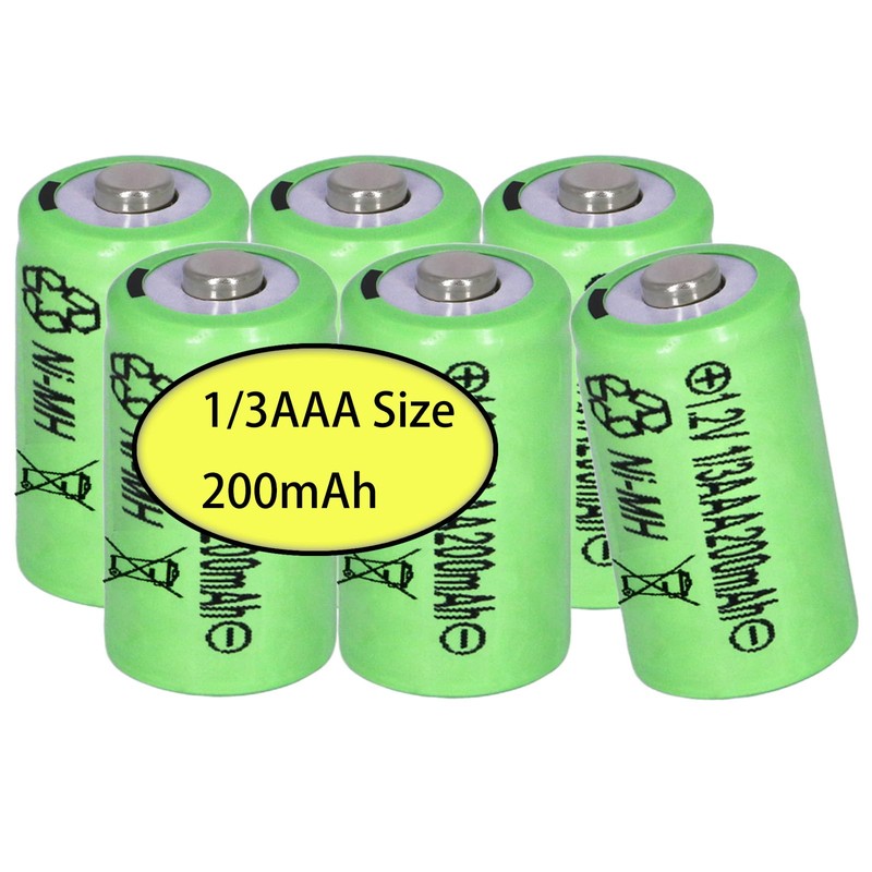 6 Packs 1/3aaa 200 mah 1.2v NI-MH Rechargeable Battery for Outdoor Solar Garden Art Light Battery (Not AAA Standard Size Batteries, 1/3 The Size of AAA Batteries)