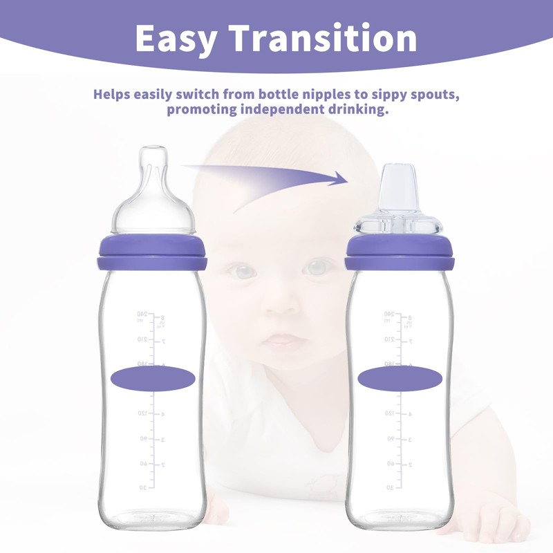 - Comfortable & Spill-Free - The soft, no-spill sippy spout nipples fit mouth comfortably, no mess while promoting drinking habits during the sippy cup conversion