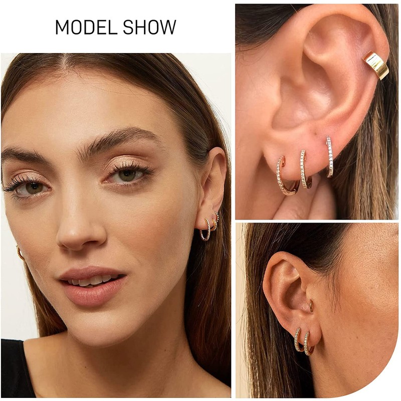 - Small hoop earrings: Includes 3 pairs of small hoop earrings. 3 pairs of minimalist hoop earrings and 3 pairs of cubic zirconia hoop earrings. There are 2 colours to choose from, silver and gold. Simple but classic little golden Huggie earrings will never go out of style.