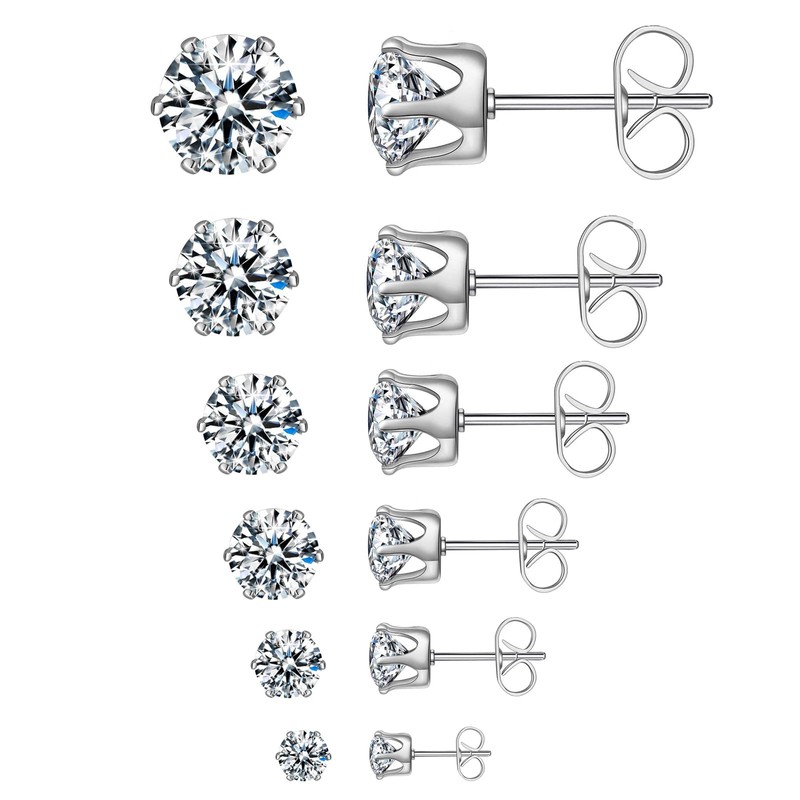 - 【SET OF 6 CZ Stud Earrings】Stainless steel earrings for women,includes 6 pairs of stud earrings for women in 6 sizes(3mm/4mm/5mm/6mm/7mm/8mm), pin size: 10 mm, by butterfly earrings backs and the extra silicone clear earrings backs for you.