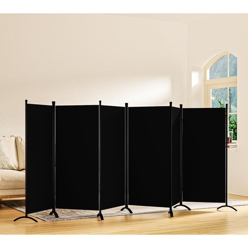 6 Panel Room Divider, Folding Privacy Screen Wall Divider for Room Separation, Freestanding Room Partitions for Home Office Dorm Decor,Black
