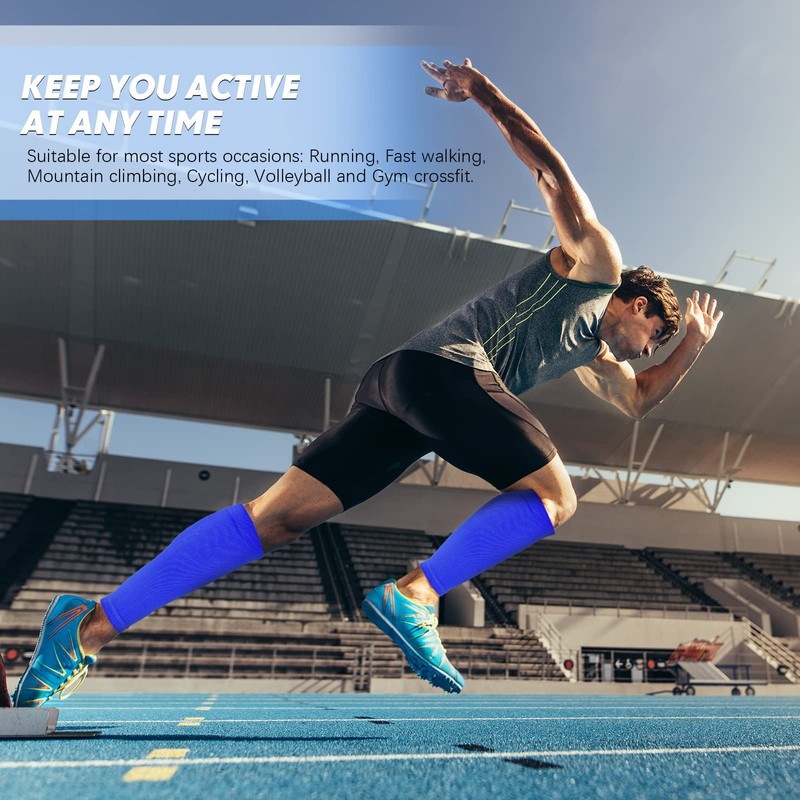 • Reduzca el riesgo de ejercicio: las mangas de pantorrilla de compresión para mujer sostienen los músculos de la pantorrilla, previenen la tensión muscular, alivian los calambres musculares, el dolor muscular y la fatiga de las piernas, y suministran oxígeno a los músculos para reducir el ácido láctico, la hinchazón, el entumecimiento y la mala circulación, etc.