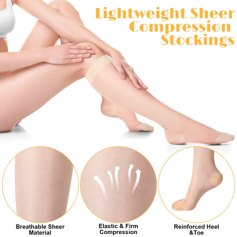 - El paquete incluye: recibirá 6 pares de medias de compresión transparentes de 20-30 mmHg en color beige y tamaño extragrande, que se pueden reemplazar en cualquier momento, y la elección del color beige nunca pasará de moda