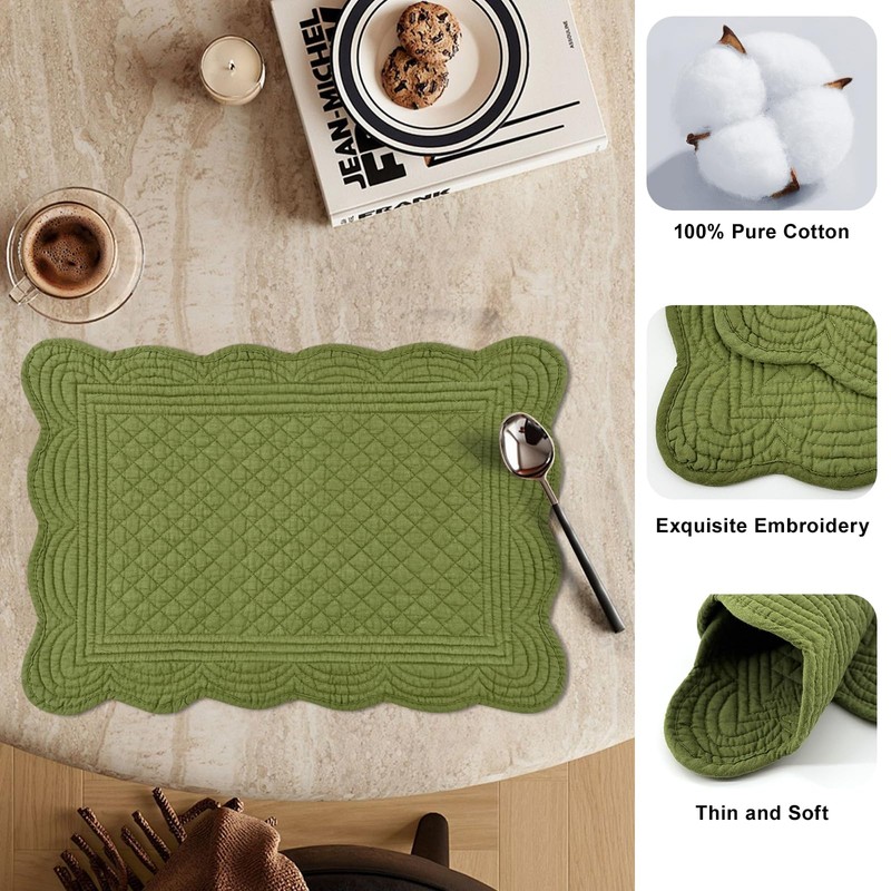 - 【Professional Quality】: Crafted from imported premium 100% cotton fabric, MINUPWELL placemats offer a soft, non-slip surface that enhances friction between the placemat and table, safeguarding your food and drinks from sliding, ensuring a more enjoyable and secure dining experience.