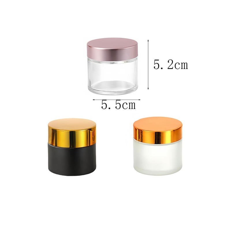 6 Pcs 2 oz Frosted Glass Jar with Gold Lid,60g Glass Cream Jars Refillable Travel Jars,Empty Round Cosmetic Container Jars for Cream,Sample,Lotion,Powder,Ointments,Spice