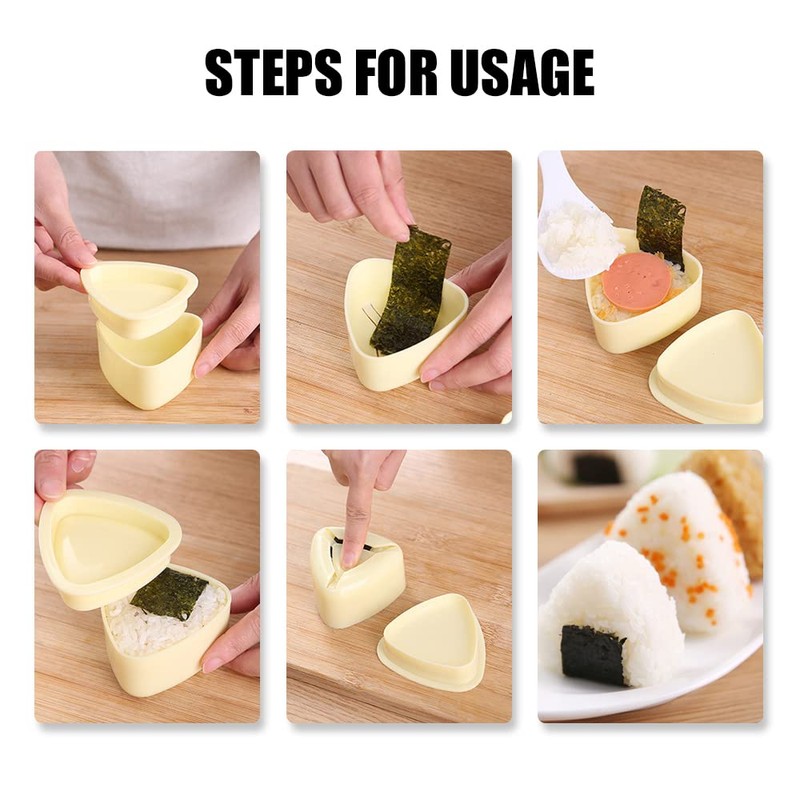 - 【Features】The mold is very easy to use. Put the sushi rice and fillings into the mold, close the lid and press firmly, and decorate the seaweed, and you get a beautiful and delicious triangular rice ball.