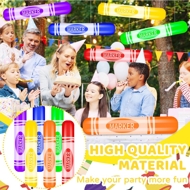 • Product Include and Size:As a photo decoration for the back-to-school season, you will receive 6 marker-shaped inflatable balloons. The size of each marker-shaped inflatable balloon is about 27 inches in length, which is large enough to be a very conspicuous photo decoration for the back-to-school season.