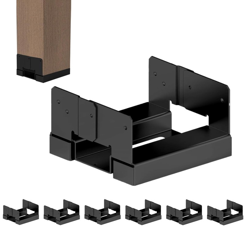 6 PCS 4x4 Black Galvanized Post Base Steel Inter 3.5x3.5 Wood to Concrete Adjustable Post Anchor with 1" Standoff for Deck Patio Gazebo Pergola
