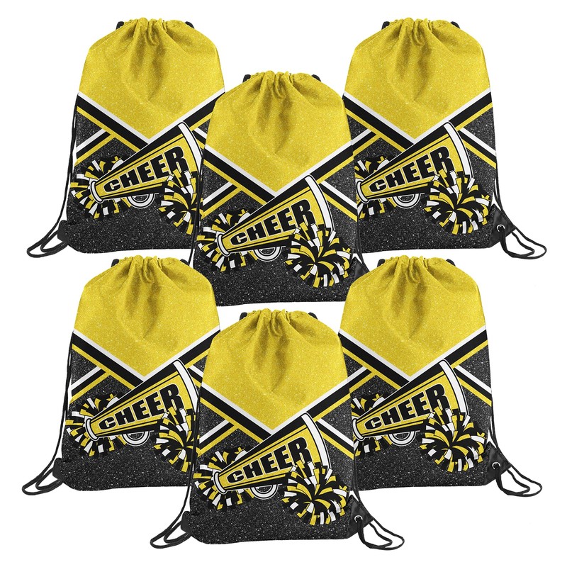 6 Pcs Cheer Drawstring Backpack Cheerleading Drawstring Bag Cheer Accessories Gifts for Cheerleaders (Gold)