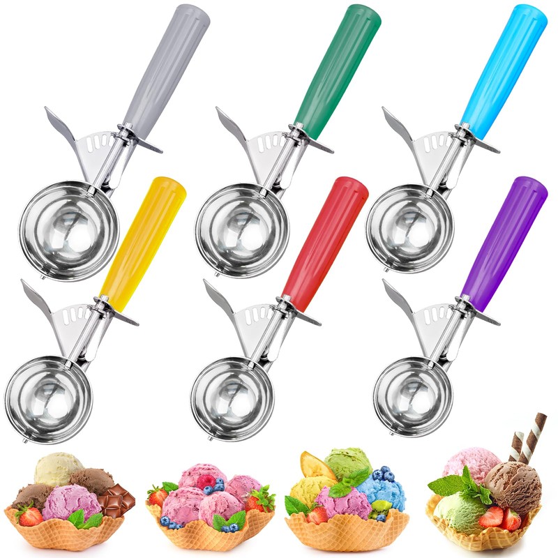 - MULTIPLE USES, IDEAL DISHER SCOOP: The ice cream scoop set can be used to scoop and portion all kinds of foods, like ice cream, cookie dough, rice pudding, mashed potatoes, and more. They can be used as ice-cream scoops, cookie scoops, melon baller scoop, trigger scoop, and cupcake scoop also, endless uses.Perfect for scooping the right amount of foods.