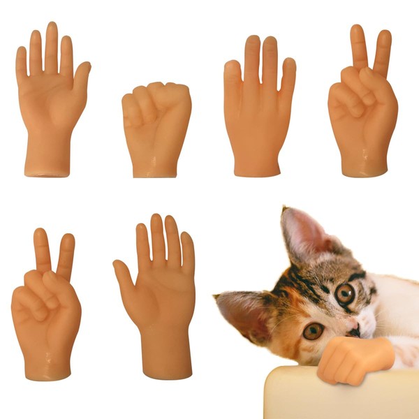 6 Pcs Cute Mini Hands for Cats,Tiny Human Hands for Cats,Rubber Mini Tiny Fin...