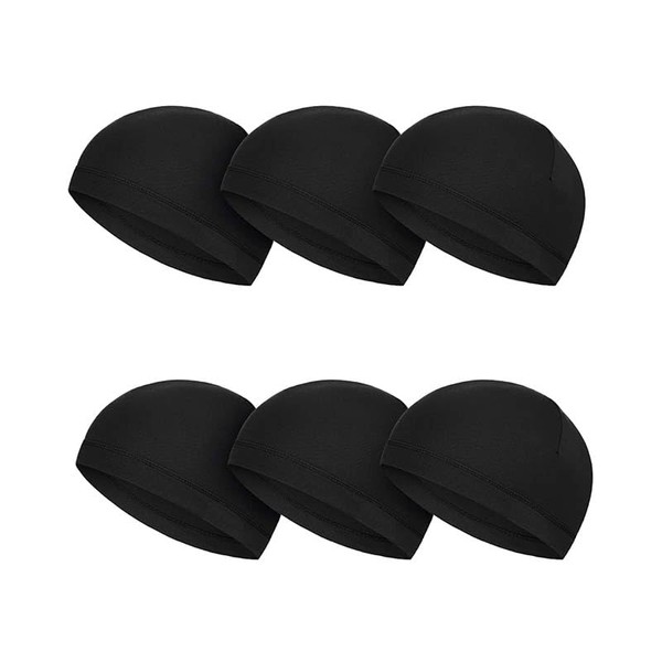 6 Pcs Cycling Skull Cap,Black Helmet Liner Skull Cap Sweat Wicking Hats Cycling Skull Caps, Cycling Cap Under Helmet Liner