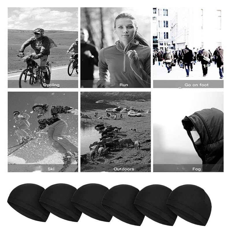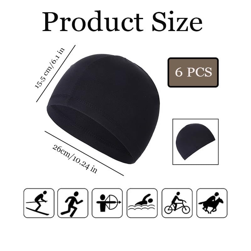 6 Pcs Cycling Skull Cap,Black Helmet Liner Skull Cap Sweat Wicking Hats Cycling Skull Caps, Cycling Cap Under Helmet Liner
