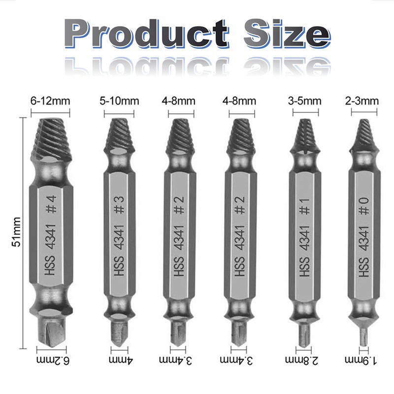 - ★【Value Package】: The Value 6 PCS Screw Extractor Set including specifications: 0#, 1#,2* 2#, 3#, 4#, can meet the needs of multiple sizes. Coming with a storage box, easy to carry and store.