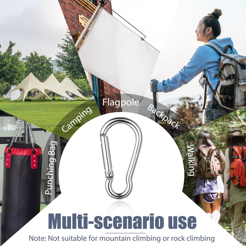 - Versatile Applications: These mini snap hook carabiners can be used to attach flags to flag rings, keychains, water bottles, ropes, backpacks, pet carriers, hanging feeders, dog leashes, tent fasteners, and more