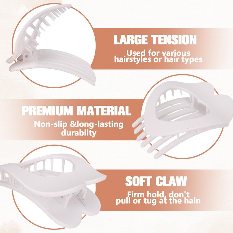 - 【Durable Material】Our Flat Claw Clips are made of High Quality Plastic Materials, Lightweight And Portable, no Burden to Wear. Highly Elastic Spring Allows the Clip to Open Easily and Hold Hair Securely. The Clip Will not Fade or Deform, Durable and Long-Lasting.