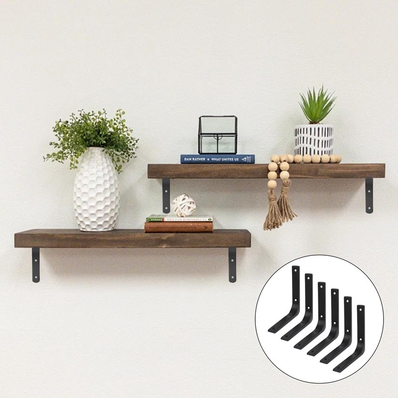 2. Contents: Contains 6 pcs black wall mounted metal shelving brackets, perfect for supporting compact to medium-sized shelving units.