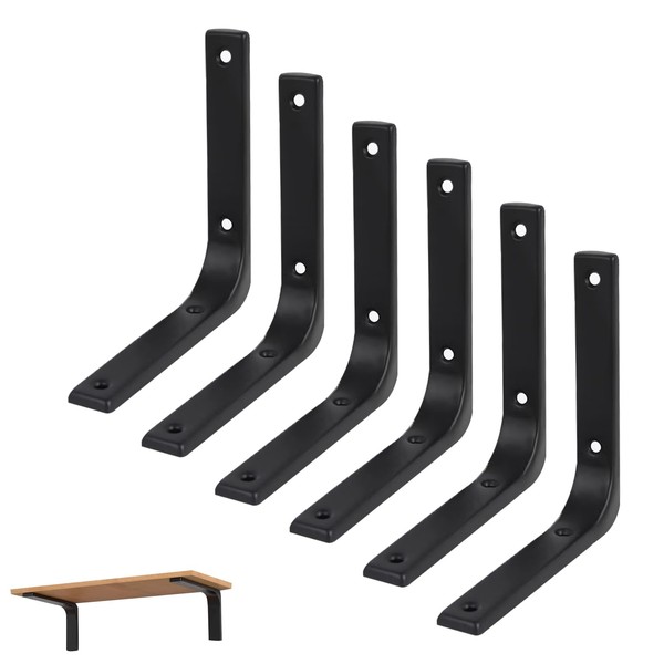 6 Pcs Floating Shelf Brackets Heavy Duty Black Shelf Bracket, L Shaped Wall Mounted Metal Shelving Brackets for Walls Bookcase Home Garden Shelves(8 Inch)
