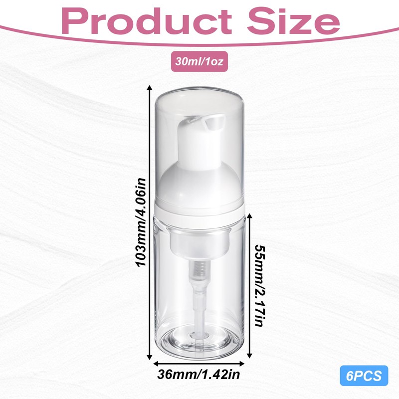 - Foam Pump Bottle Set: You will receive 6pcs travel size foam pump bottles, and each bottle has a transparent cover on the outer cover to prevent the contents from spilling when carrying