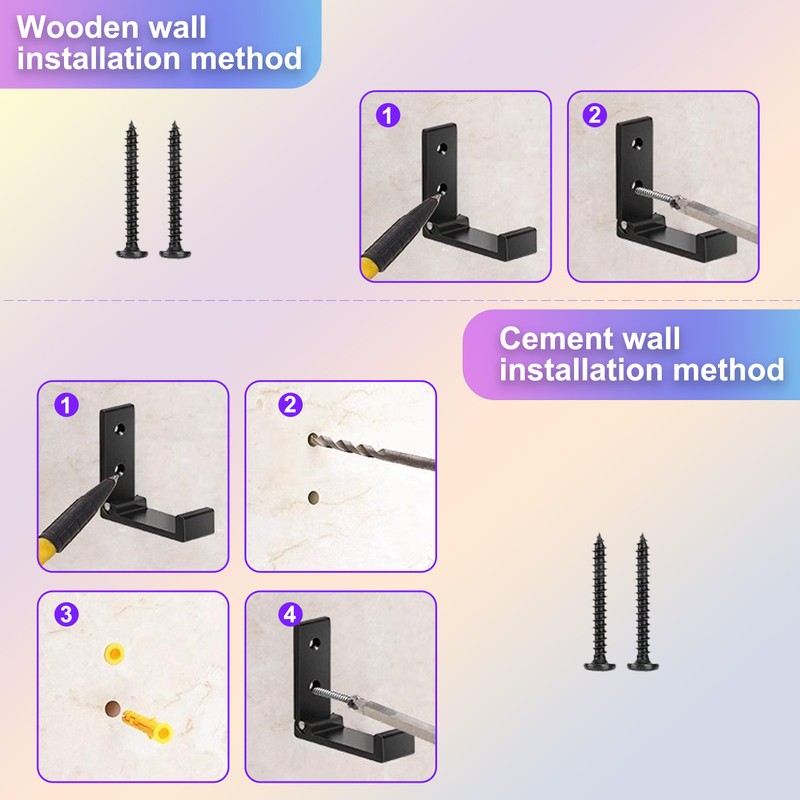 - 📍【Package】: The package contains 6 pcs wall hooks with 12 pcs screws and 12 pcs hollow wall anchors. We provide you with all the screw accessories you need for installation.