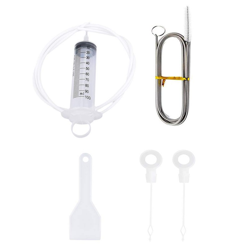 Four-piece set:100ml refrigerator air vent remover*1, 59.1 inch dredge pipe*1, drain hole plug*2, ice shovel*1