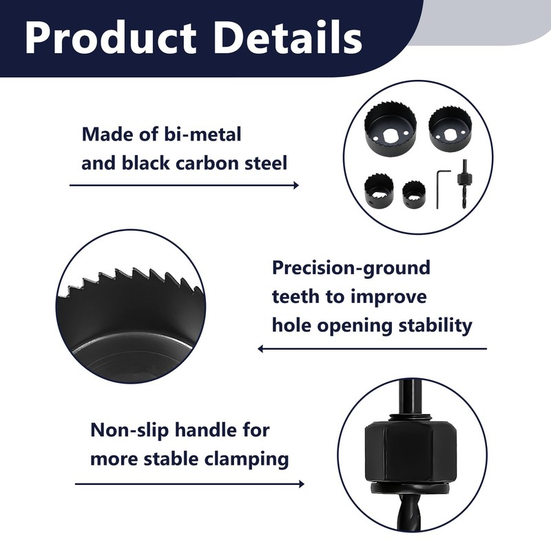 - Each hole saw is crafted from premium carbon steel, which is heat-treated and oil-treated for superior rust resistance. This ensures that the blades stay sharp and durable, providing reliable cutting performance over time, even with frequent use.