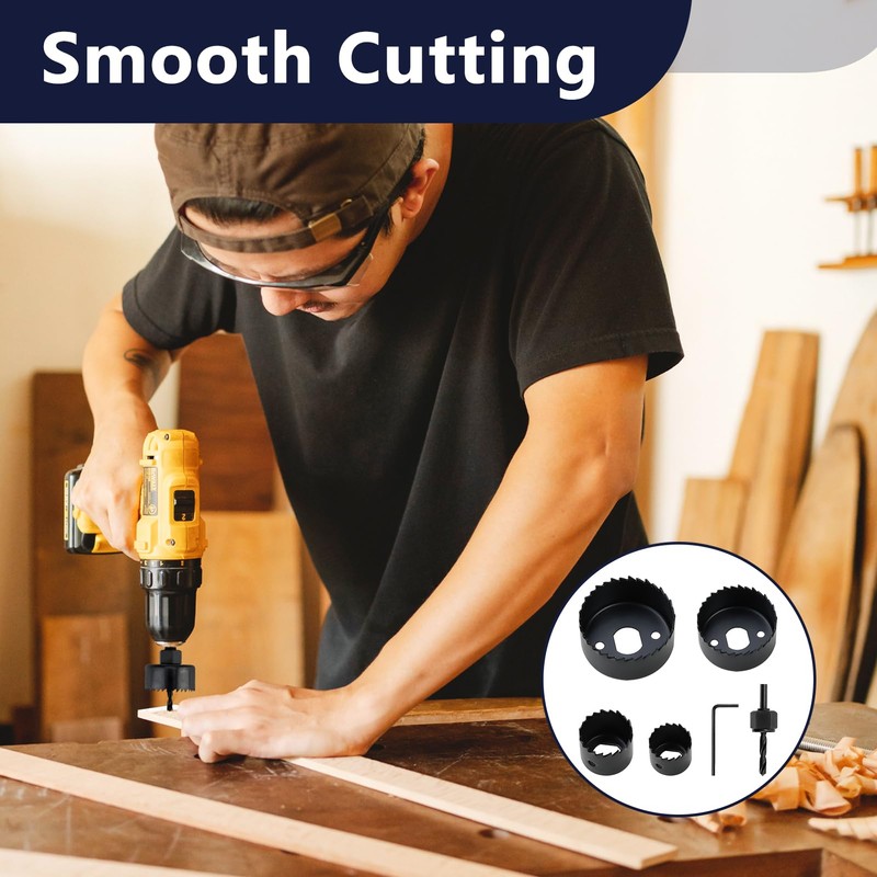 • Each hole saw is crafted from premium carbon steel, which is heat-treated and oil-treated for superior rust resistance. This ensures that the blades stay sharp and durable, providing reliable cutting performance over time, even with frequent use.