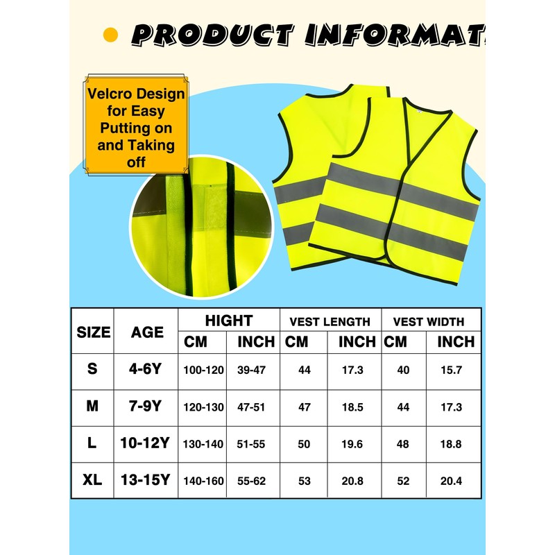 - 【Size Detail】: Kids high visibility reflective vests are available in 4 sizes: S, M, L, XL, suitable for most boys and girls, providing good protection from all angles, S size is suitable for children aged 4 to 6, M size is suitable for children aged 7 to 9, L size is suitable for children aged 10 to 12, XL size is suitable for children aged 13 to 15. Please check the size before purchase