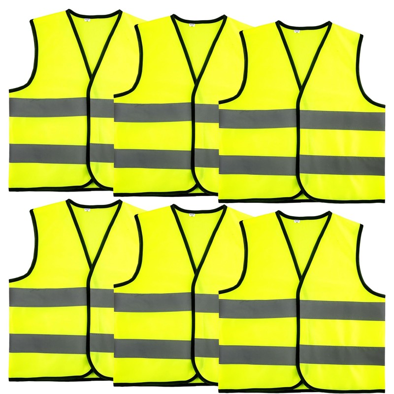 6 Pcs Kids Hi Vis Vest Child High Visibility Vest Kids Hi Vis Jacket Children Hi Vis Safety Vests with Reflective Strips for Girls Boys Outdoor Activities, Yellow (L, 10-12 years(130-140 cm))