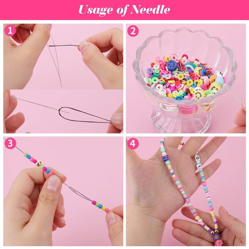 - LARGE EYES DESIGN: Large and flexible needle eye design for easy threading, bring you a better beading experience. The needle eye can be bent at ease, solved the problem of needle eye’s easy breakage and easy to thread multiple size threads and beads