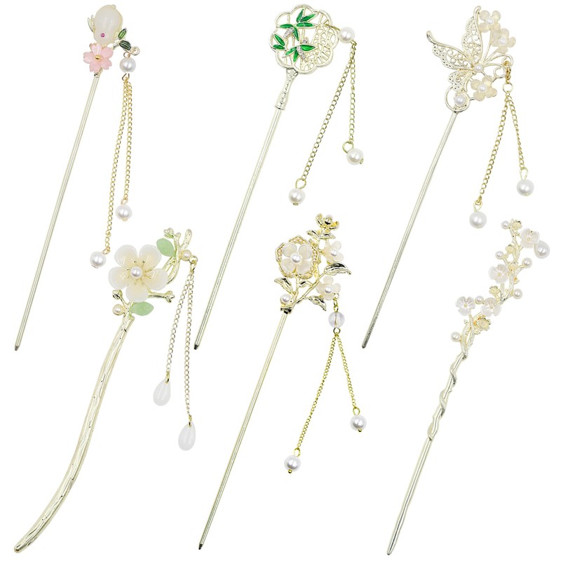 - 【 Diverse Styles 】 Inspired by traditional Hanfu, Chinese hair sticks are elegantly retro and feature 6 different shapes of hair clips and hairpins adorned with different pendants, catering to your personalized needs and aesthetic preferences.