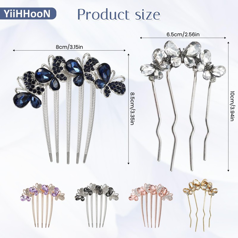 - Stylish Glitter Design: These butterfly sparkly hair combs for women are designed with beautiful butterfly shape, the shiny rhinestones are skillfully arranged, adding a touch of charm and elegance to your hairstyle