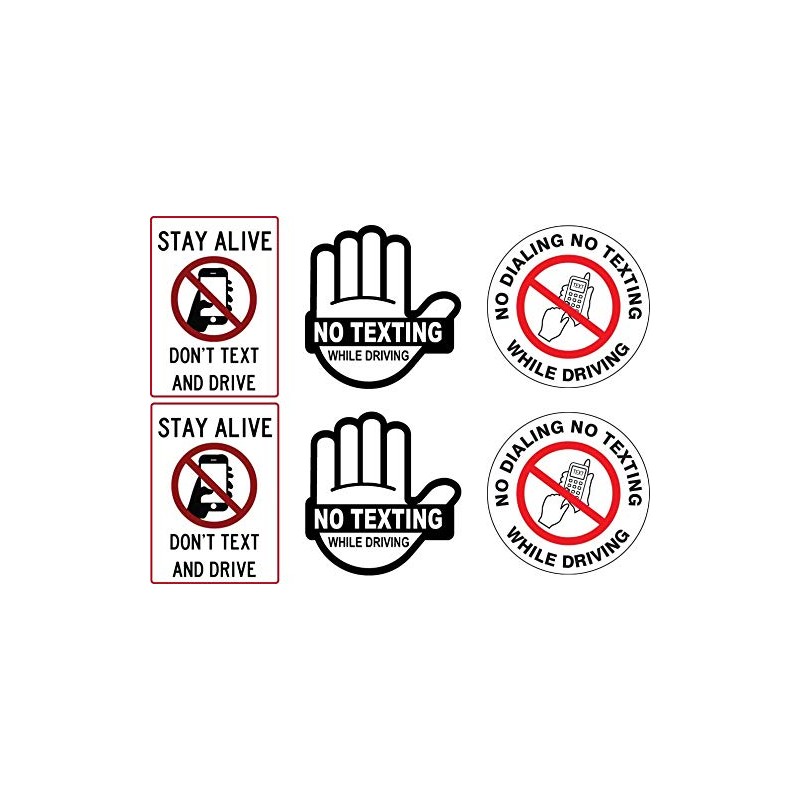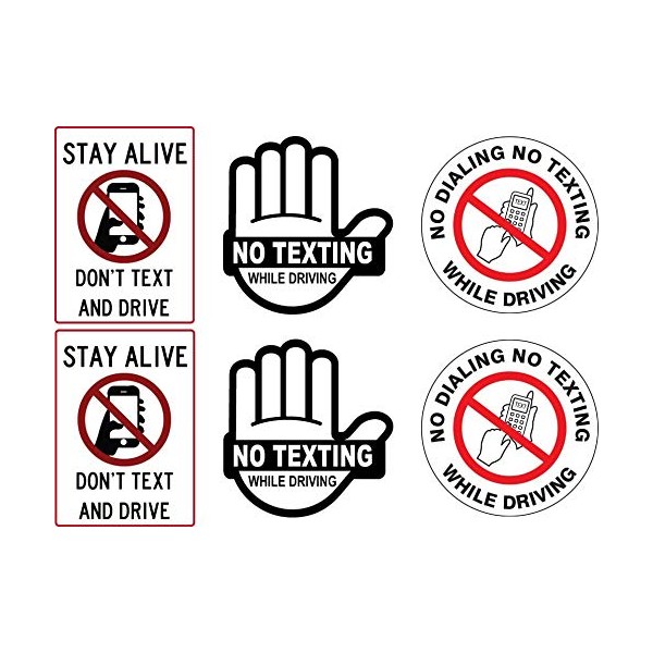 6 pcs Set Don't Text and Drive Warning Sticker Decal, for Car Bumper, Window