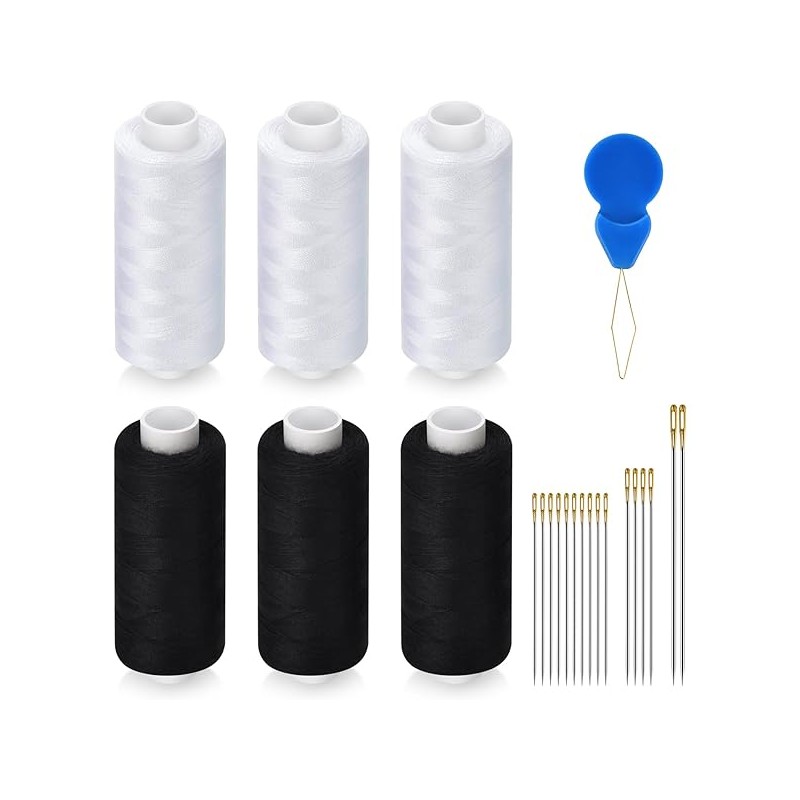 6 Pcs Sewing Thread Kit, 400 Yards Each Spool 402 Polyester Thread with Sewing Needle & Threader, Sewing Threads for Sewing Machine, Hand Stitching, Embroidery